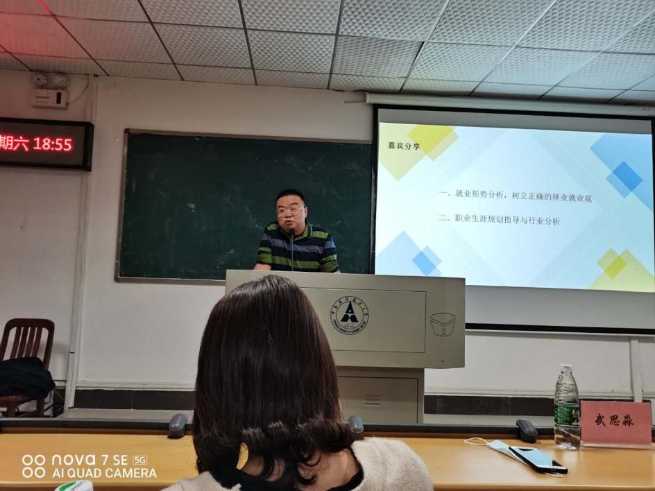 本次活动的主要议题有两个,一是就业形势分析,帮助同学们树立正确的就业择业观;二是职业生涯规划指导与行业分析。活动流程分为嘉宾分享与有奖问答两个环节。