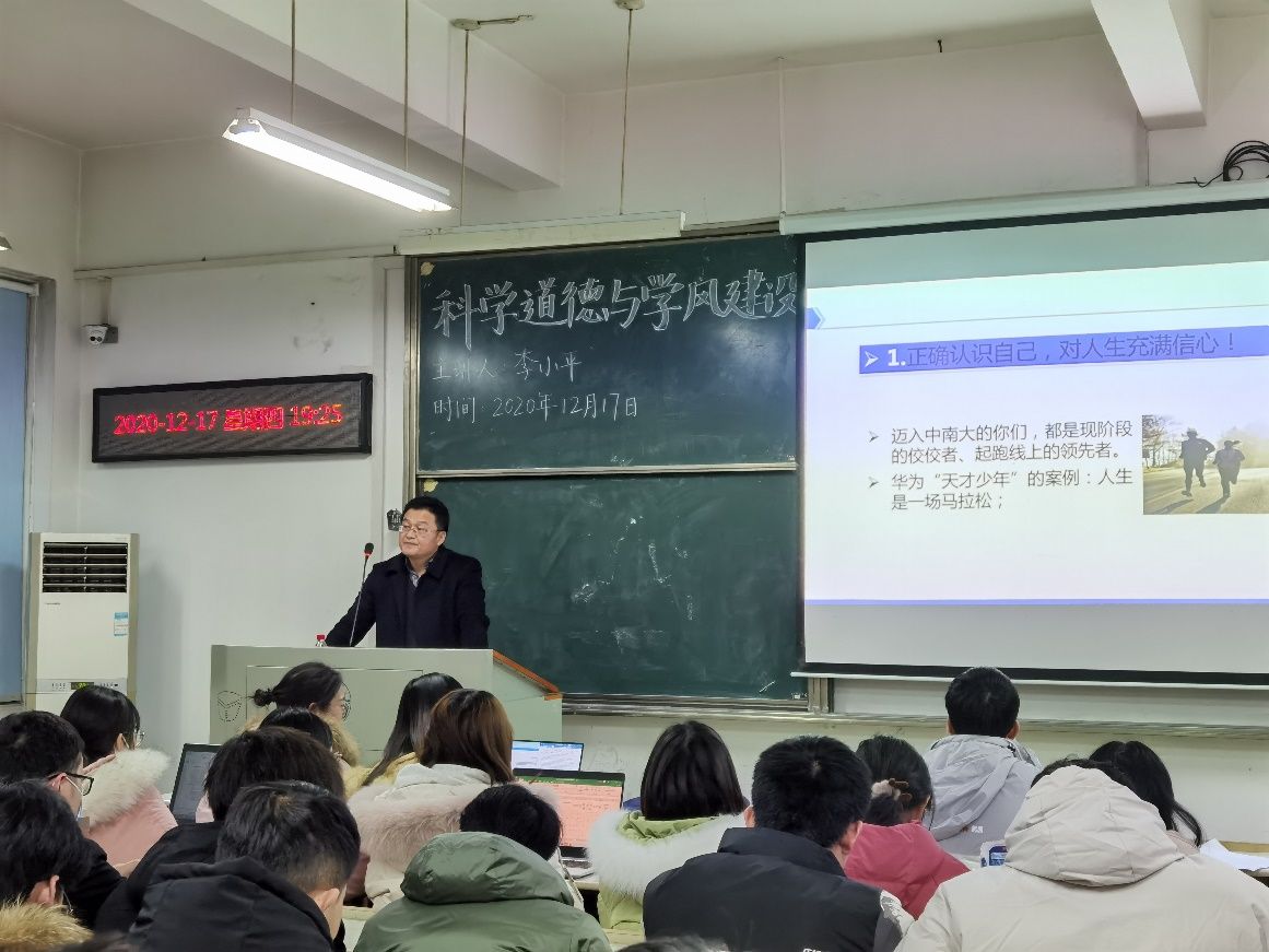 (通讯员:岳明泽 赵雪杰)为引导广大研究生养成踏实诚信的学术习惯及追求真理、大胆探索的科学精神,2020年12月17日晚上7点,由我校研究生院、党委研究生工作部和校研究生会主办,经济学院研究生会承办的“科学道德和学风建设宣讲教育”活动在文添楼112教室成功举办。本次活动邀请经济学院院长,教育部新世纪优秀人才,李小平教授为主讲嘉宾。本次活动受到广大研究生的热烈欢迎,现场座无虚席。