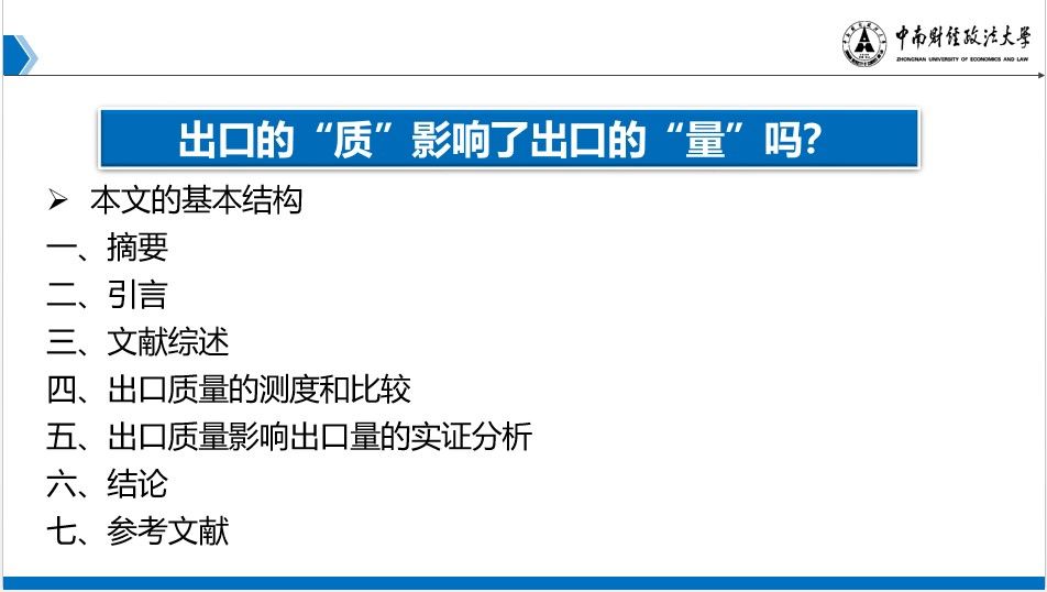 随后,李教授以其已经发表的论文《出口的“质”影响了出口的“量”吗?》为例向同学们讲解了论文的框架结构和撰写的关键要点。从摘要到引言再到实证分析和结论,论文的各部分都要言之有物。同时,对于如何在研究中进行创新,李小平教授分享了自己的高见。