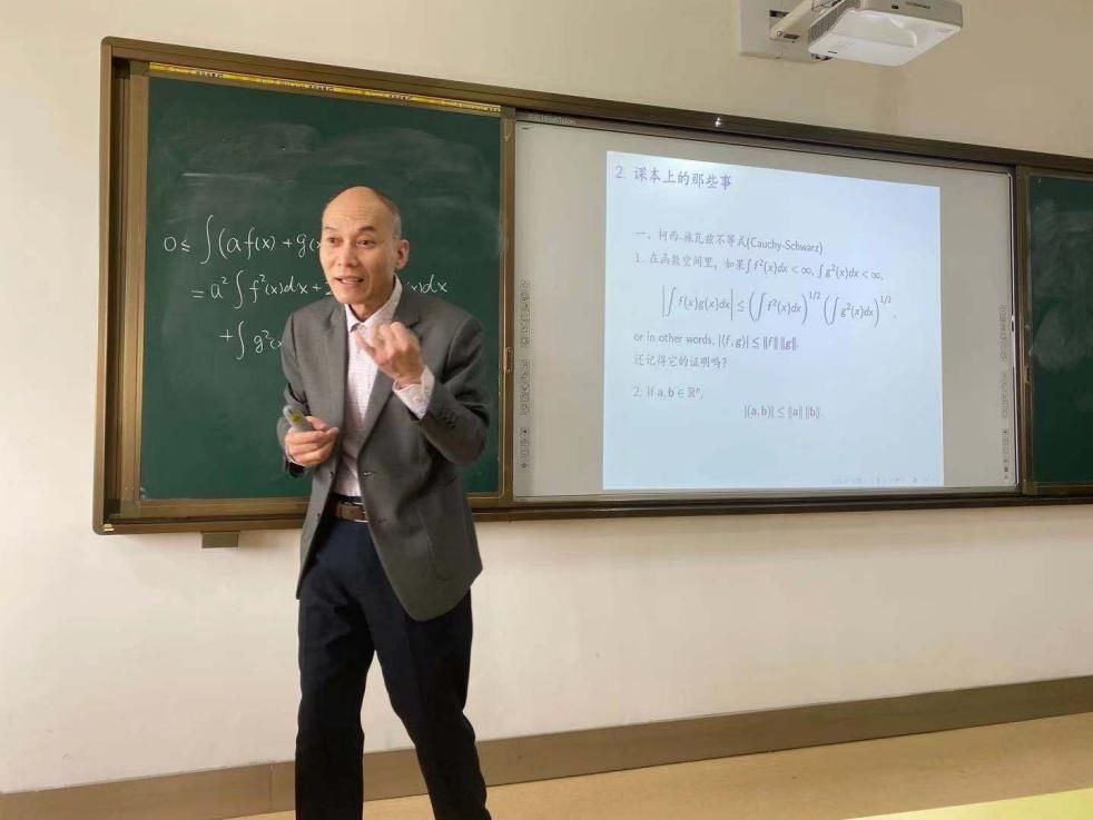 其次,董教授以课本上的知识为切入点,推广得出关于柯西-施瓦兹不等式的应用方法。最后,董教授以自身经历向同学们鼓励同学们什么开始学习都不算晚,要有活到老学到老的精神。