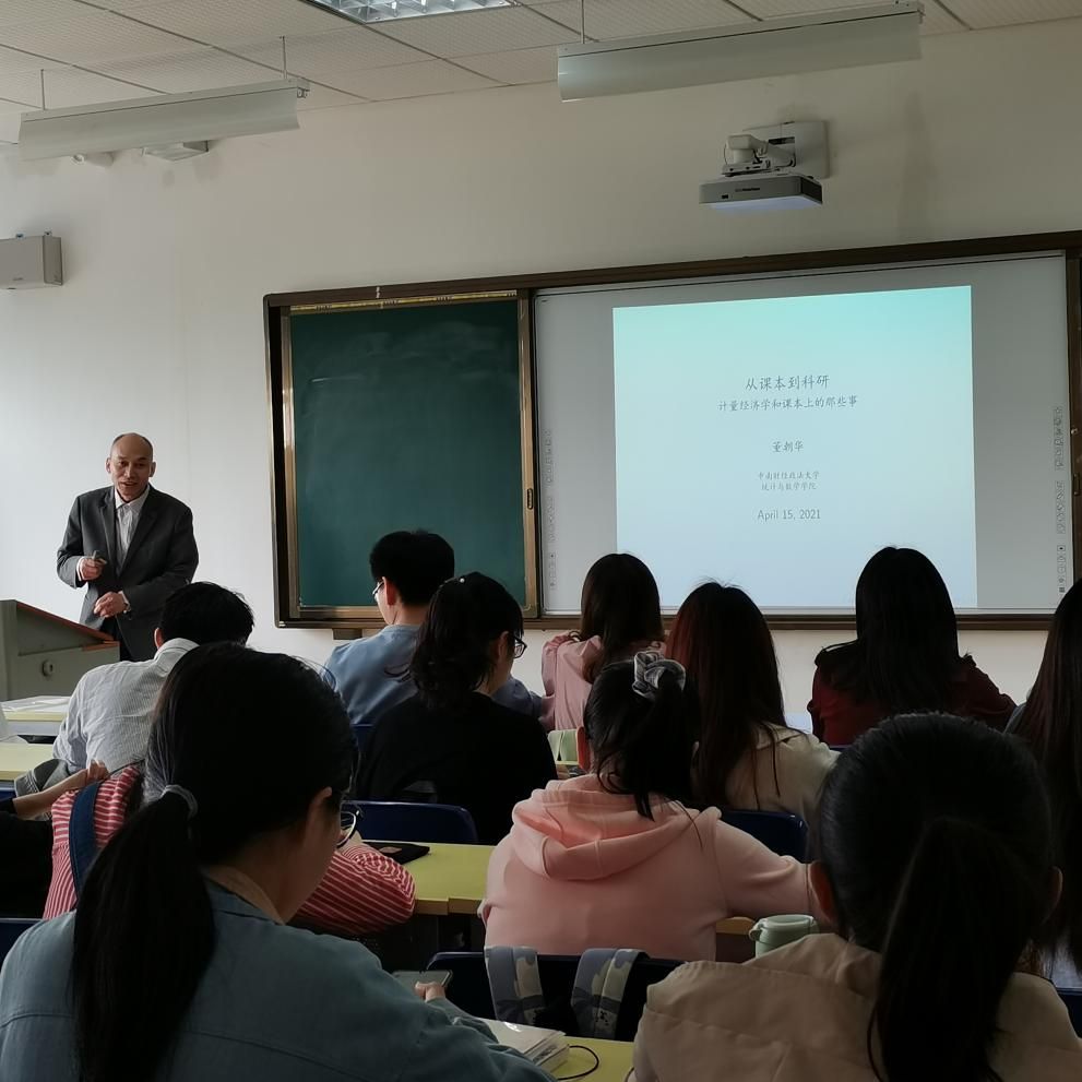 本次讲座的主讲人是董朝华教授,讲座的题目为“从课本到科研——计量经济学和课本上的那些事”。董教授首先介绍了计量经济学的定义及发展历程,计量经济学是经济的一个分支学科,是以揭示经济活动、社会活动及相关领域中客观存在的数量关系为内容的分支学科。随后老师列举了获得诺贝尔奖的计量经济学家。计量经济学已经在经济学科中居于最重要的地位,在很多院校中已经成为经济课表中最权威的部分。