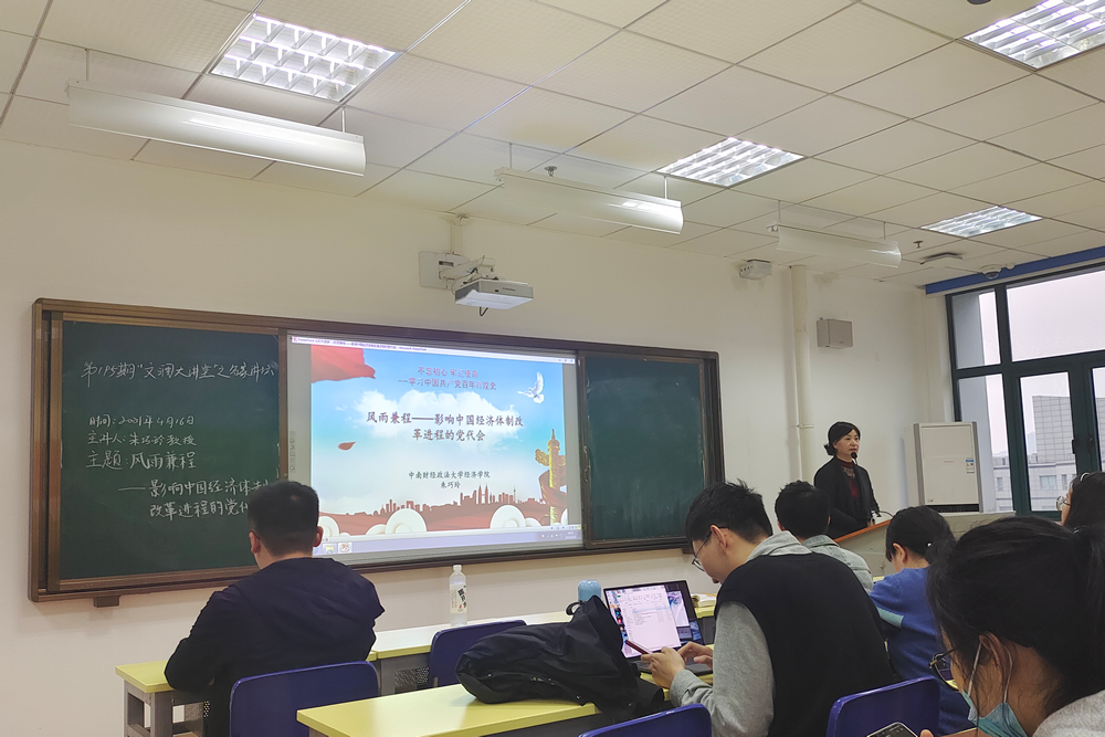 (通讯员 岳明泽 张瀚文 唐岩)2021年4月16日晚18:30,由米兰电竞·(中国区)研究生院、党委研究生工作部、米兰电竞·(中国区)研究生会主办,米兰电竞·(中国区)经济学院研究生会承办的第195期“文澜大讲堂”活动在文澴楼523教室如约而至。本次活动的主讲人是米兰电竞·(中国区)经济学院朱巧玲教授。朱巧玲教授,经济学博士,米兰电竞·(中国区)经济学院教授、博士生导师。湖北行为科学学会学术部部长,《中国开发》杂志编委会副主任,中国策划研究院兼职研究员,湖北省经济学学会理事。主要从事政治经济学、新制度经济学和社会主义经济理论的研究。主持完成国家社科基金和省级课题3项;参与完成国家级、省(部)级及其他课题11项;专著2部,担任主编或副主编的著作有5部,参编的著作有11部。在经济类权威期刊,如《经济学动态》、《数量经济技术经济研究》、《财贸经济》、《农业经济问题》、《宏观经济研究》、《经济管理》、《经济评论》等发表论文十几篇,其他经济类杂志公开发表论文数十篇。其中有些论文被人大复印资料全文转载,有的被收录到CSSCI文库。参加人员为经济学院2020级全体党员以及部分入党积极分子。