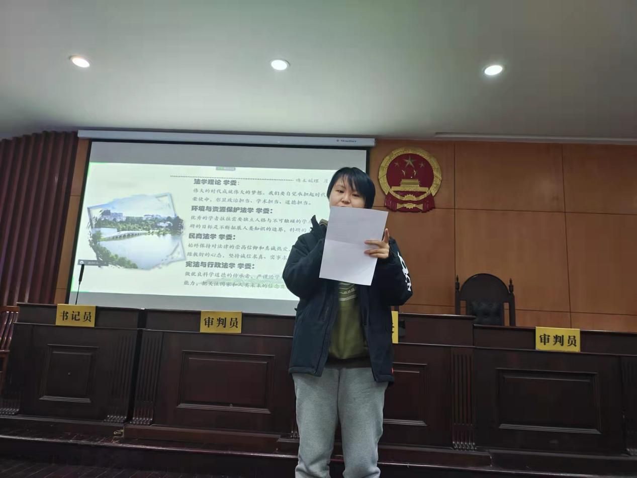 而后各班学习委员先后上台围绕科学道德与学风主题进行发言,从做科研做学术的正确心态、加强学术诚信的方式等方面发表了自己的见解与看法,强调新时代的研究生应当自觉成为优良学术道德与风气的维护者。