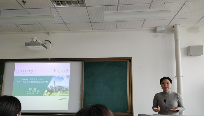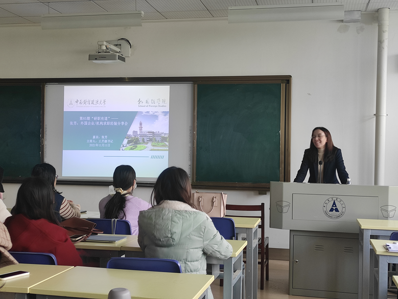(通讯员 张冉 郑泽灵 安欣)11月11日下午,外国语学院在文澴楼505教室成功举办“研职有道”之外国企业/机构求职经验分享会。此次活动由王芹副书记主持,邀请现就职于美国农业部海外服务局农业贸易处的张芳女士作为主讲嘉宾。张芳女士从个人经历出发,分享了求职中一些需要注意的问题和技巧,揭开了外国企业/机构的神秘面纱,并针对同学们关心的问题一一进行答疑解惑。
