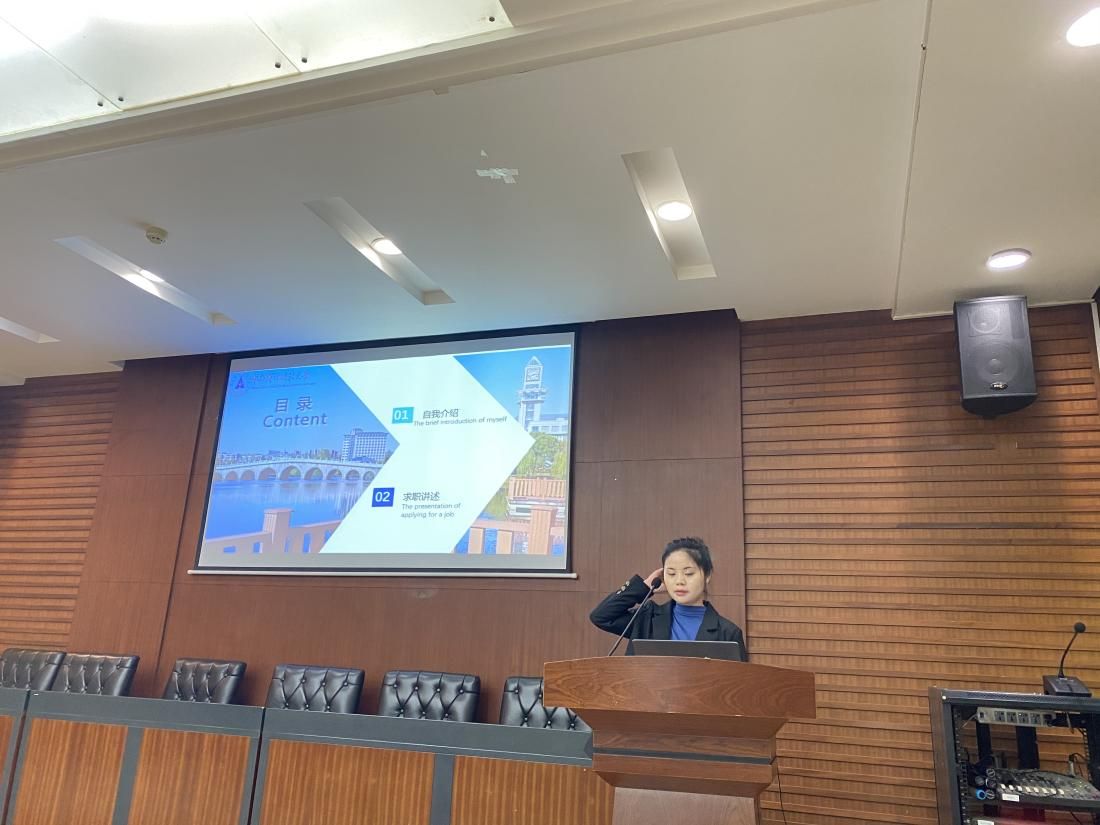 决赛分为自我介绍、求职讲述、评委问答三个环节。在自我介绍和求职讲述中,10位选手就自己预设的应聘岗位,针对性的向评委和观众展示获奖实习经历以及自身的闪光点,展现了自身独特的风采;在评委问答环节中,评委根据选手的简历和讲述内容进行随机提问,选手们仪表端正、沉着应对、表达清晰,展现了强大的心理素质和现场把控能力。
