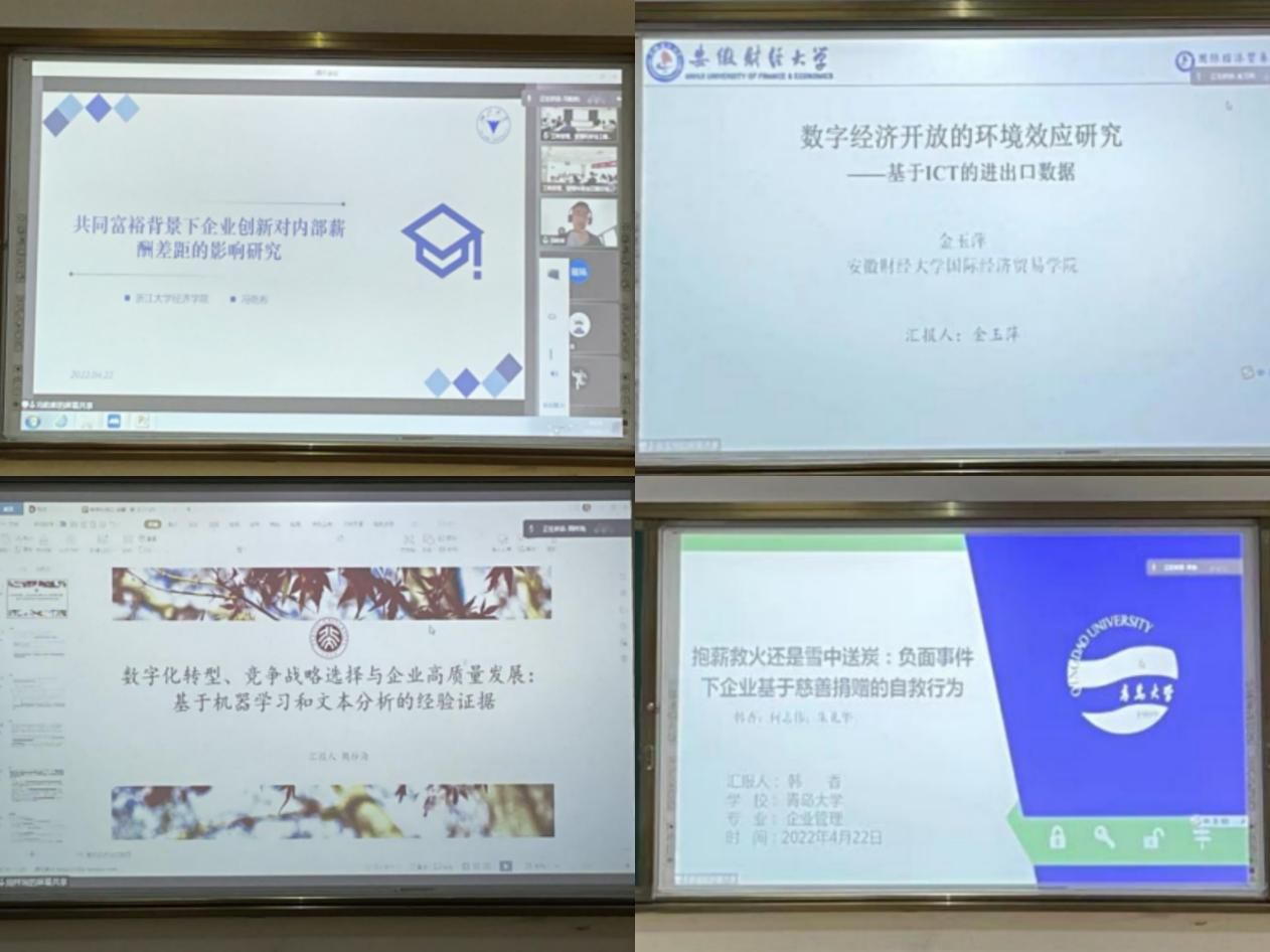 安徽财经大学的硕士研究生金玉萍就其论文《数字经济开放的环境效应研究——基于ICT的进出口数据》进行观点阐释,她指出数字经济开放和环境污染存在倒U型关系,通过地区异质性分析发现数字经济开放与环境污染之间的效应存在差异,产业协同集聚存在单门槛值,技术创新存在双门槛值。北京大学的博士研究生周梓洵分享了题为《数字化转型、竞争战略选择与企业高质量发展:来自机器学习与文本分析的证据》的论文,揭示了企业数字化转型与全要素生产率提升的非线性关系,深化了对企业数字化转型的认识。青岛大学的硕士研究生韩香对其题为《抱薪救火还是雪中送炭:负面事件下企业基于慈善捐赠的自救行为》的论文进行详细介绍,分析了2011-2019年A股上市公司发生的负面事件,并重点考察企业受到负面事件影响后出于公关动机所实施的捐赠行为。