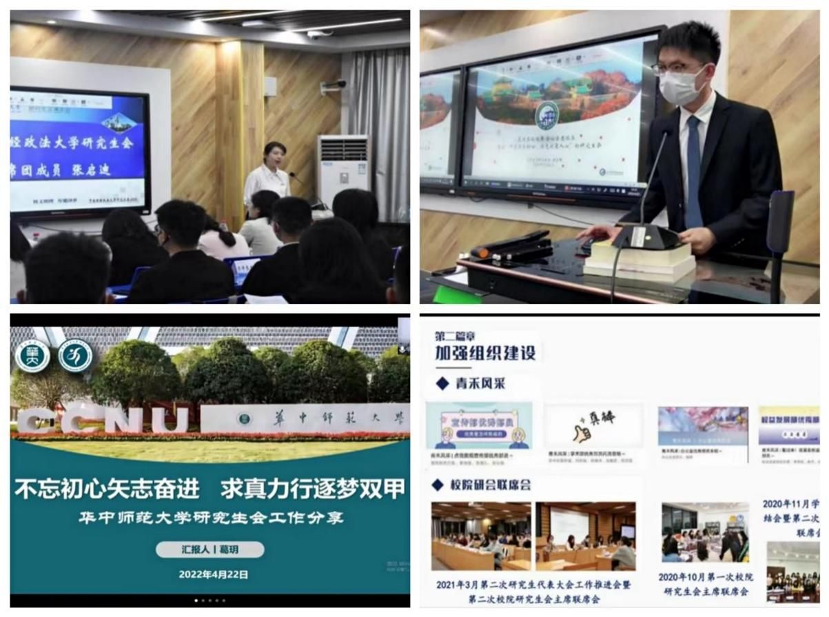 华中师范大学研究生会主席团成员葛玥作了题为《不忘初心矢志奋进,求真力行逐梦双甲》的特色经验分享。华中师范大学研究生会在形成全方位、全覆盖的组织工作格局基础上,重点从强化思想引领、共树理想信念,加强自身建设、共起模范作用,厚培学术土壤、共助人才培养,践行服务宗旨、共创校园文化,扩大宣传辐射、共展学子风采等方面服务同学,打造同学们想得起、找得到、靠得住、负责任、有爱心的研究生组织。