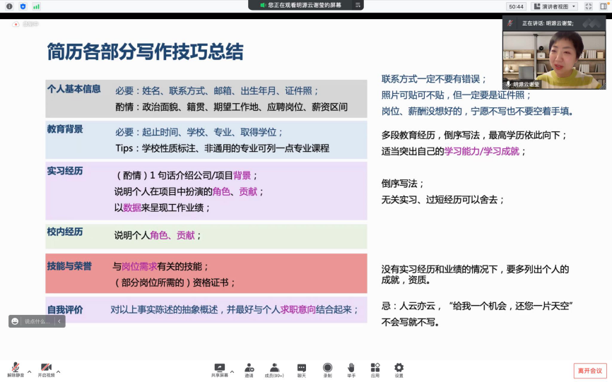此次讲座主要围绕简历制作和应届生面试指导两个部分进行。
