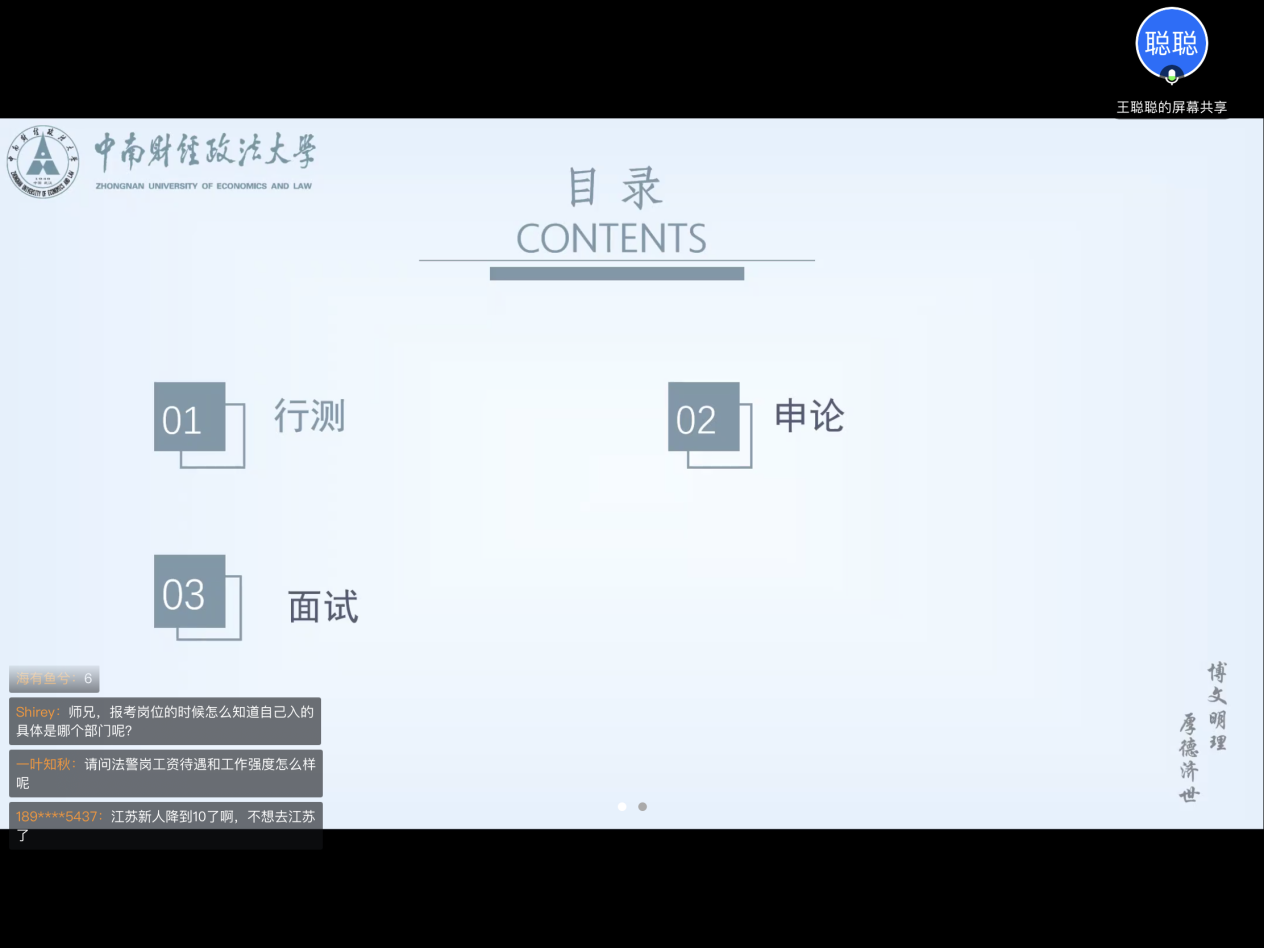 就职于天津市滨海新区人民检察院的2019级法律(非法学)专业硕士王聪聪从行测、申论和面试三个方面分享了省考备考经验,并针对性介绍了笔试答题技巧和面试注意事项。