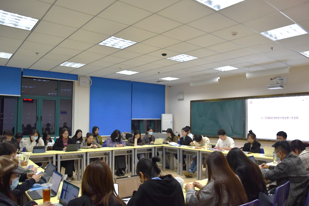 (通讯员 胡素莉 摄影 陈馨怡)为深入学习领会党的二十大精神,贯彻落实好党的二十大作出的重大决策部署,切实推进研究生样板党支部培育项目建设,强化支部交流,11月25日晚,校研究生会党支部在文澴楼522教室开展了以“守正创新担使命,勇毅前行谱新篇”为主题的11月支部主题党日活动。校研究生会党支部代表、2022年样板党支部培育项目负责人参加会议,校学生会功能型团支部书记张栩源作为特邀团支部代表共同参加会议。会议由校研究生会党支部组织委员左喻文杰同志主持。
