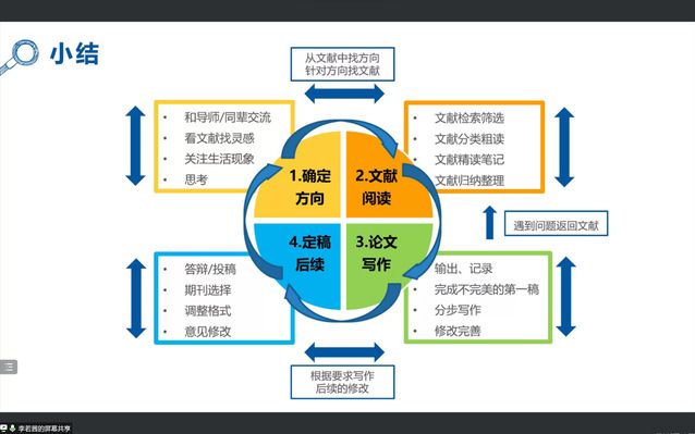 随后,李若茜同学以“我做学术研究的体会”为题进行分享,从写论文前、写论文中、写论文后三个维度展开。
