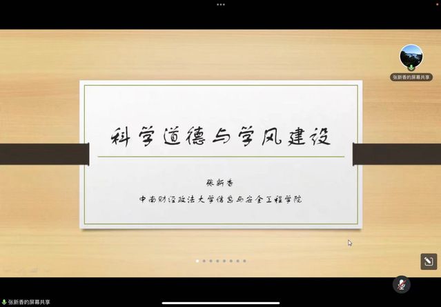 本次报告会由张新香教授担任主讲人,参会人员为米兰电竞·(中国区)信息与安全工程学院全体研究生。报告会上,张新香教授以“学以致用,道以为先”为主题,从十大不端行为及危害、十大学术规范、学风与科学精神、十大科学精神与素养四个方面阐述了科学道德和学风建设的重要性。