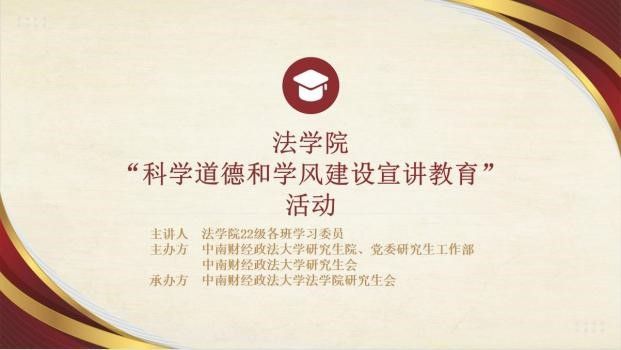 活动伊始,本次活动主持人王蒂娜同学对此次活动的举办目的与意义进行了介绍,并向同学们强调:学术研究的发展离不开学风建设的过程,作为法学院的研究生,我们更应该遵重法律、遵守规章、坚持道德则,端正自身学风,用实际行动维护科学道德和倡导学风建设。