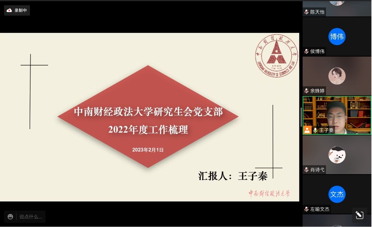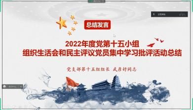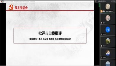 2月1日晚,校研究生会党支部支委、校研究生会主席团及职能中心负责人、支部各党小组组长在线上开展了2022年度组织生活会和民主评议党员集中学习批评活动。活动由宣传委员余姝婷同志主持。