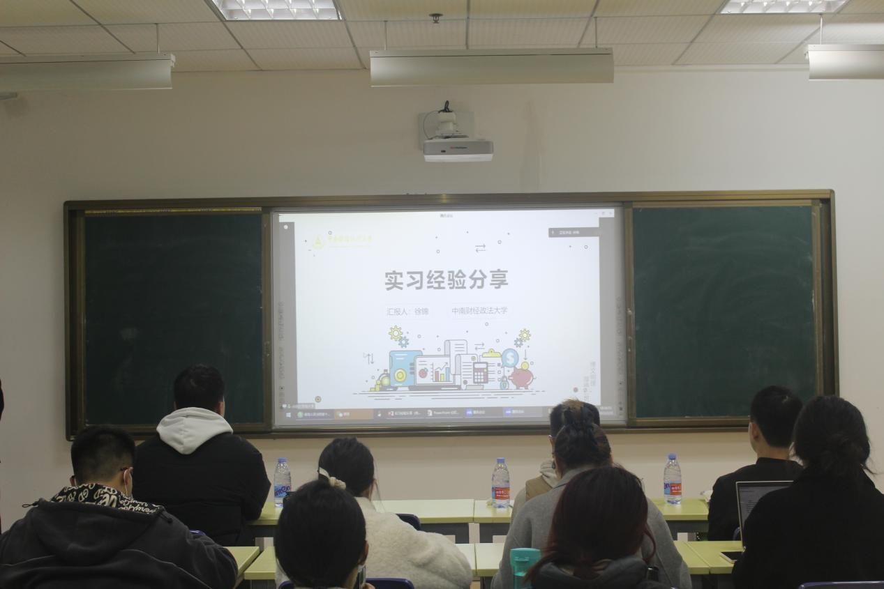 在经验分享环节,2021级会计专业硕士徐锦,曾在中兴通讯股份有限公司、长江证券股份有限公司等多家公司实习。他向同学们分享了企业财务和券商的实习体悟,并针对实习前准备工作和实习期间注意事项两个方面向同学们传授“实战”经验。他建议同学们在选择岗位时,从自身需求出发并综合考虑薪资待遇、工作氛围以及工作能力要求等因素。