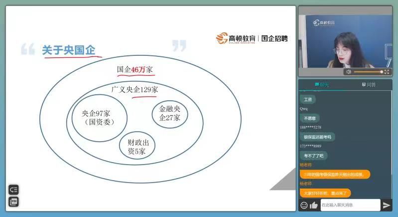 在就业岗位选择部分,张老师首先介绍了银保监岗位的相关情况,并重点讲解了专业科目考试的比例构成以及备考方式。其次,针对央国企岗位,张老师介绍了央国企的涵盖范围、薪资状况、岗位类型和对应专业。