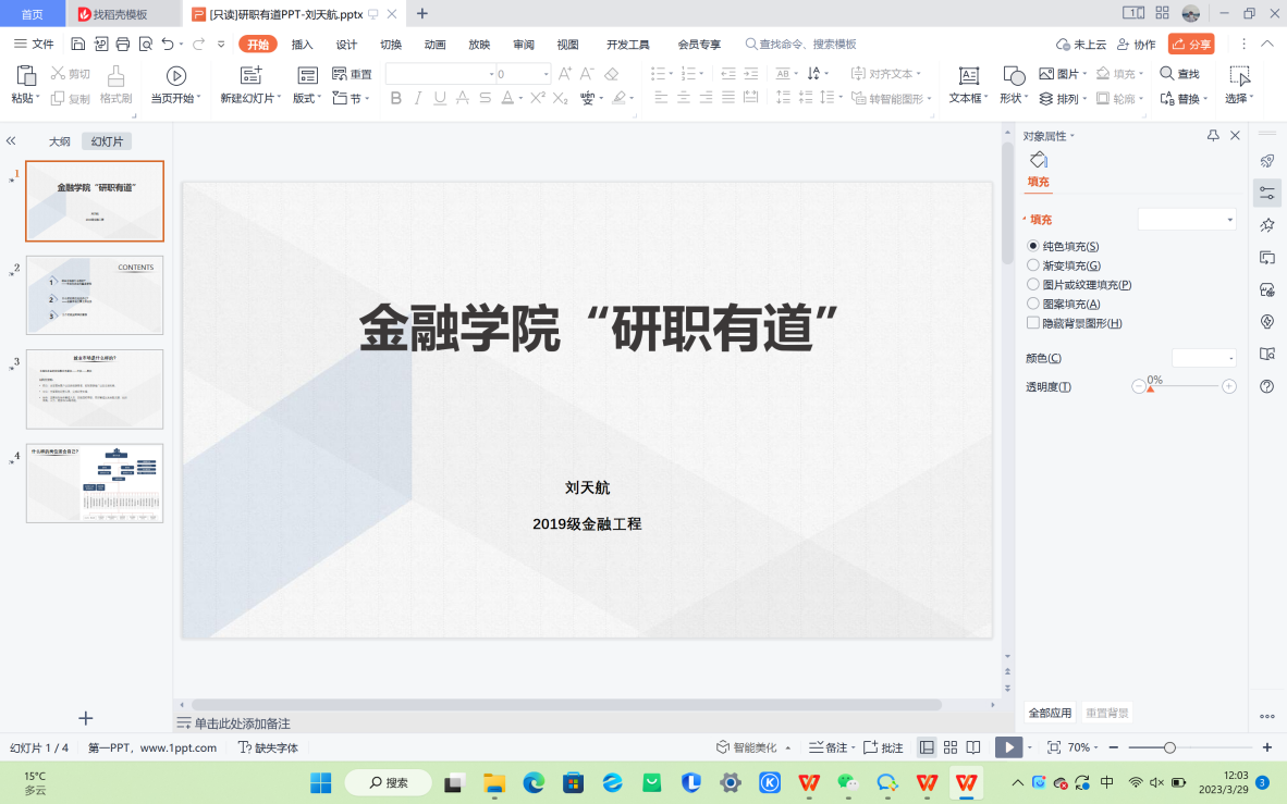 (通讯员 杨雅婷 张瑶)为帮助我校研究生了解就业形式,提前做好职业生涯规划,提升就业竞争力,3月26日下午,由研究生院、党委研究生工作部、校研究生会主办,金融学院研究生会承办的第149期“研职有道之初识职场”研究生就业经验分享会于线上成功举办。本次活动邀请了金融学院2019级金融学硕士研究生任明喆和2019级金融工程硕士研究生刘天航进行求职经验分享。分享会由金融学院研究生会成员张瑶主持,全院研究生参会。
