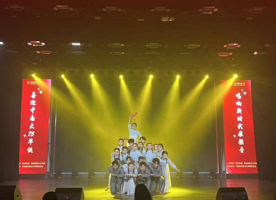金融学院舞蹈《烈火中永生》通过再现被困于重庆渣滓洞集中营的中国共产党人在挣扎和磨难中奋起抵抗的情景,展现了先辈们坚如磐石的理想信念和不屈不挠的革命意志;法学院节目《红船》以一根红绸将观众的思绪带回到嘉兴南湖的红船,以意象性的动作语言展现革命理想和中国希望,生动诠释了红船精神;财政税务学院节目《星星之火》的表演者化作一簇簇红色火焰,伴随音乐旋律不断跃动升腾,展现出百年前共产党人以星星之火驱散黑暗、照亮前路的决心与勇气。公共管理学院古典舞《唐印》以轻盈婀娜的舞姿惟妙惟肖地展现了精致绚丽的唐三彩仕女俑,带领观众穿越时空,再现大唐丰腴自信、奔放瑰丽的历史风貌;外国语学院节目《晨光曲》的表演者拾一只木凳起舞、执一柄蒲扇弄影,将传统东方女性的优雅风姿铺展在恬淡闲适的市井生活画卷上,尽显人生曼妙、岁月静好;经济学院节目《觉醒》以当代舞的形式讲述了百年前战火纷飞中,中国青年以《共产党宣言》为指引投身革命、追求真理的故事,激励吾辈以信仰之光照亮青春之路。刑事司法学院节目《光影里的青春》开启了一场两代青年跨越百年的时空对话,以慷慨激昂的朗诵和轻盈优美的舞蹈礼赞新时代,表达了“誓以吾辈之青春,捍卫盛世之中华”的雄心壮志。16个学院(中心)研究生以丰富的表演形式和精湛的舞台表现呈现了一场绝美的视听盛宴,赢得了现场观众的阵阵掌声和欢呼声。