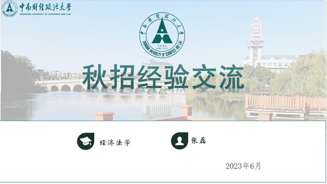 2020级法律(非法学)专业硕士王锐同学已录用为武汉市选调生。他首先介绍了公考前期准备工作,鼓励大家坚守“初心”,自我鼓励,增强备考动力并建议大家在暑期要尽快完成毕业论文的撰写工作,在秋招时要积极收集各类就业信息。同时他还分享了公考笔试和面试的心得,特别是行测备考策略、结构化面试的关键点等方面。