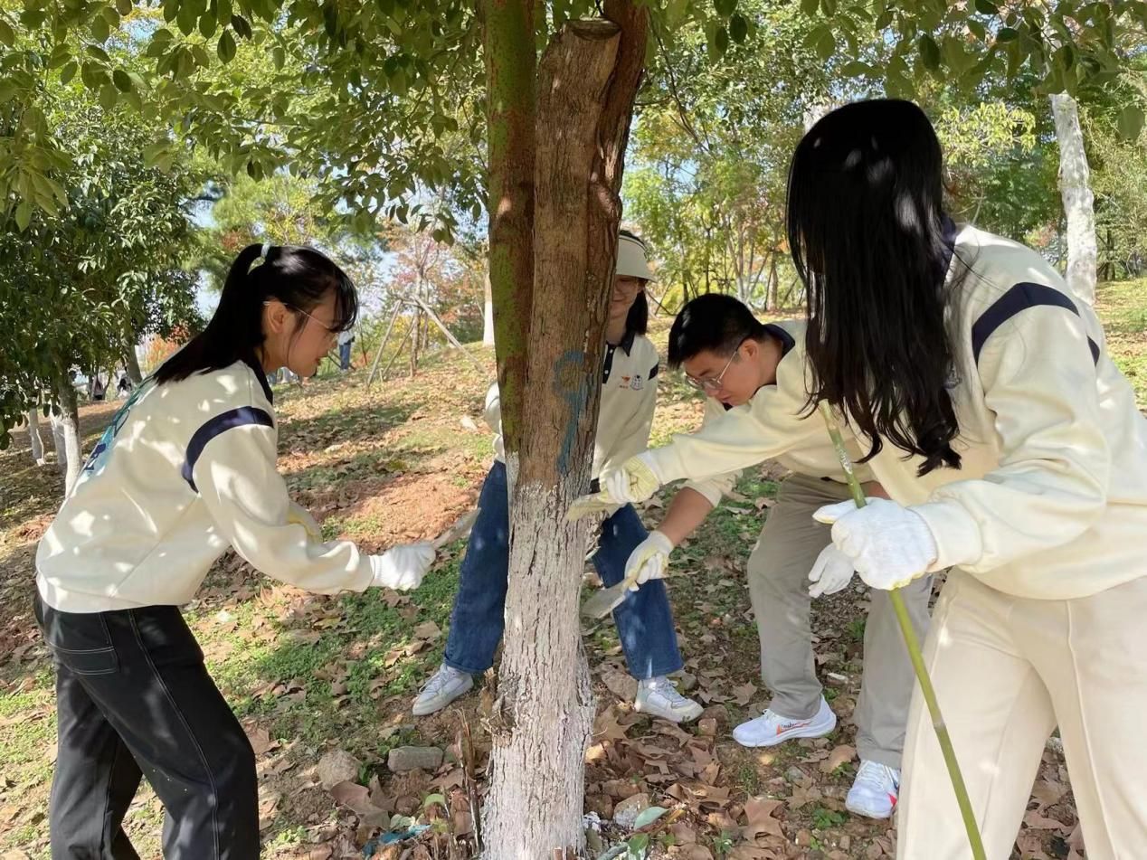 启动仪式结束后进入实践环节,师生们领取劳动工具走向“友谊林”,为树木粉刷白灰,大家分工配合、团结协作,呈现出一片忙碌的劳动景象,为冬日校园增添了一道的亮丽的风景线。