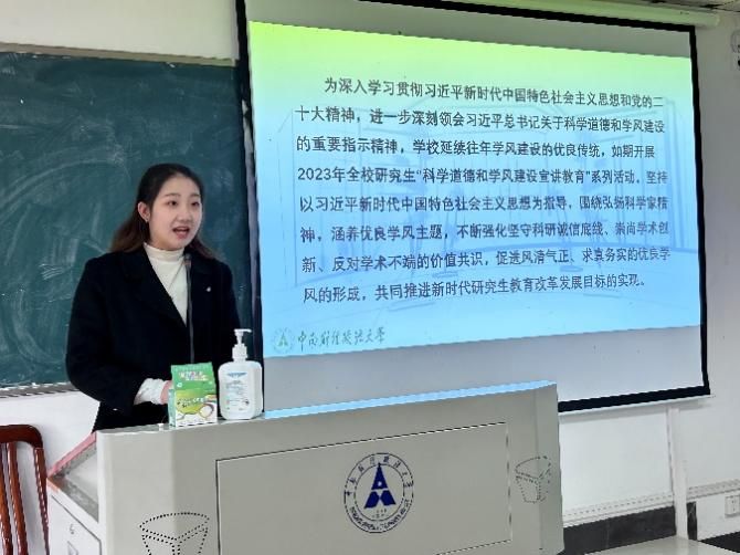 (通讯员 张秋蕊 王静儿)为深入学习贯彻习近平新时代中国特色社会主义思想和党的二十大精神,进一步深刻领会习近平总书记关于科学道德和学风建设的重要指示精神,努力营造法学院良好的学术氛围,2023年11月26日上午九点,由我校研究生院、党委研究生工作部和校研究生会主办,法学院承办的“科学道德和学风建设宣传教育”活动在文添楼501教室举行,法学院二百余人参与了此次活动。