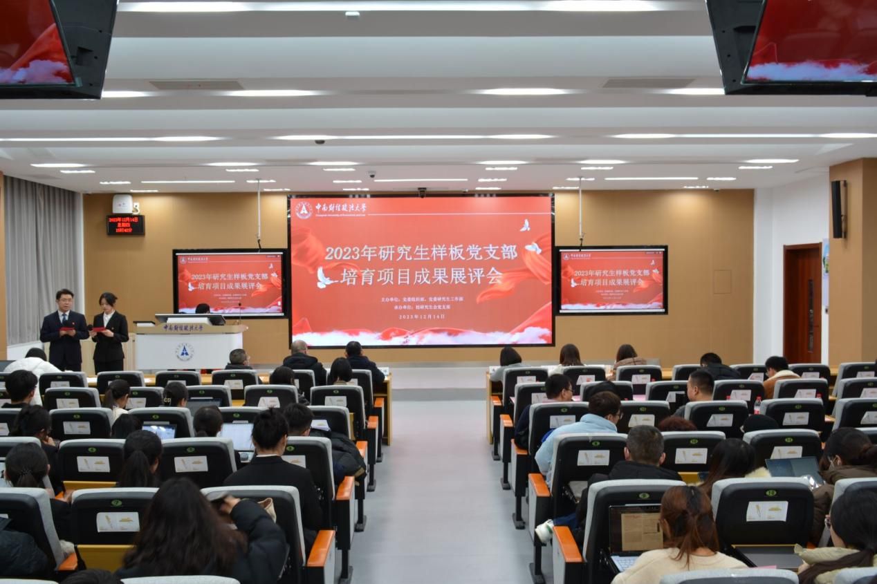 (通讯员 江剑 何欣雨 左喻文杰 摄影 陈俊羽)为深入学习宣传习近平新时代中国特色社会主义思想和党的二十大精神,全面总结研究生基层党建工作典型案例和特色经验做法,示范带动研究生党建工作质量全面提升,12月14日下午,我校举办2023年研究生样板党支部培育项目成果展评会。展评会在文波楼112智慧教室举行,党委研究生工作部肖翠祥部长,机关党委潘丰文副书记、党委组织部陈金川副部长、党委宣传部覃虹副部长、校团委高晓溪副书记和党委研究生工作部白玉副部长出席展评会并担任评委。各学院(中心)分管研究生思政教育工作负责人出席指导,研究生辅导员及研究生代表到场观摩。