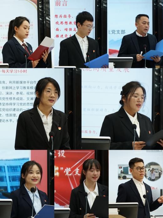 在展示汇报环节,马克思主义学院研究生第一党支部从理论武装、专业学习、社会实践和教工支部四个方面展现支部在增强引领力,激发创新力,提升战斗力方面的成效;哲学院研究生第一党支部从思想教育、组织建设、党员活力、联系群众等方面入手,展示了支部在着力提升党建工作“高度、力度、强度、广度”四个维度上所取得的成效;统计与数学学院2022级研究生党支部紧扣大数据“脉搏”,展现坚持党建引领与学科特色融合,共同缔造学院党建新活力;金融学院投资一班第一党支部加强党员先进性教育,致力于提升党组织影响力和号召力,打造以“创新型、学习型、服务型”为核心的“三型”支部品牌。参加本次展评的16个研究生党支部以学习贯彻党的二十大精神为主线,紧紧围绕党支部“七个有力”的建设要求,用生动的语言、饱满的热情和丰富的素材呈现了各党支部建设的经验成效。