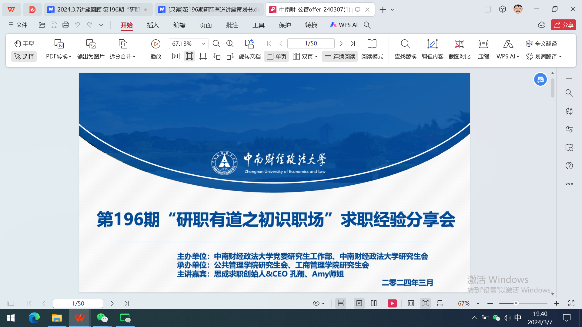 至此,第196期“研职有道之初识职场”——研究生求职经验分享会圆满结束。本次求职经验分享会为求职者提供了一个交流和学习的平台和与职场人士互动的机会,让同学们对职业规划等有了更加明确的认识,能够更好地应对职场挑战。希望各位同学们能够脚踏实地,厚积薄发,祝大家顺利拿到心仪的offer!