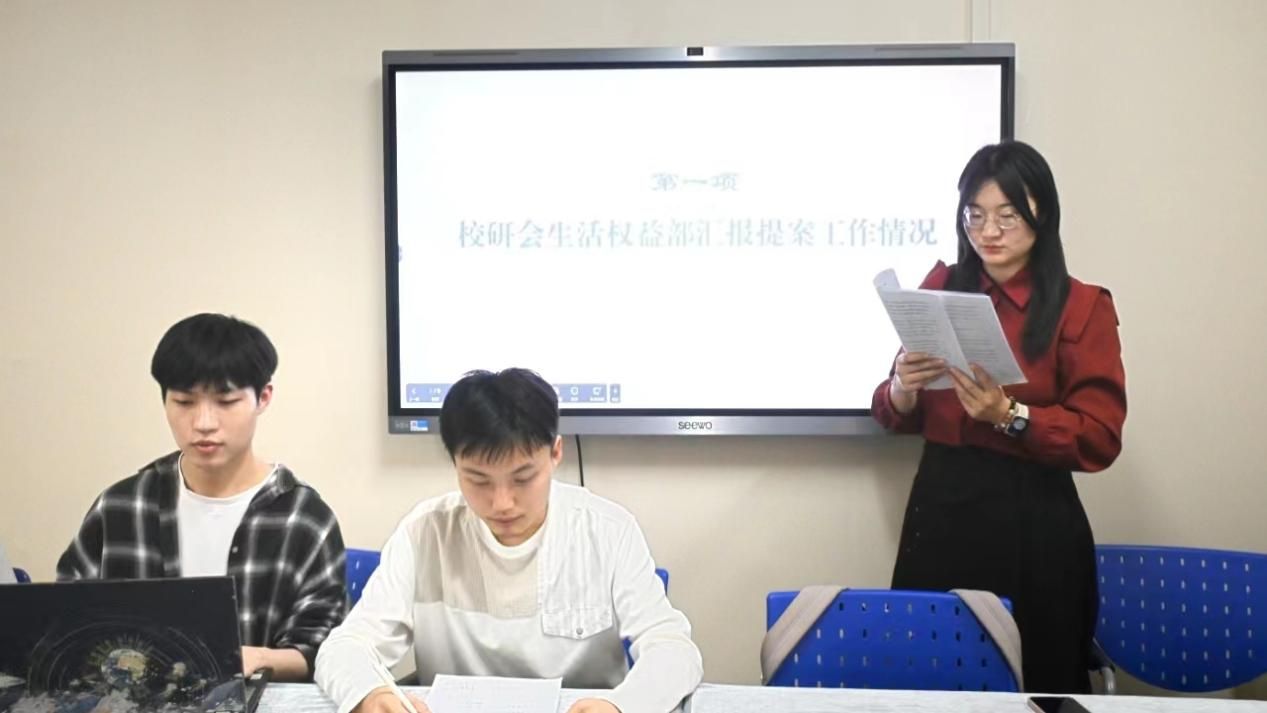 会议第三项,校研究生会主席团成员左喻文杰总结发言。他阐述了校研究生会关于开展“我为同学办实事”项目的打算,就《研究生权益手册》的制定和“研职有道”系列品牌活动向各位代表征求意见建议,对近期权益工作取得的成绩和不足进行说明,希望各学院研究生代表进一步发挥联系广大研究生的作用,打通“校-院-班”三级联动体系,当好同学们的代言人。
