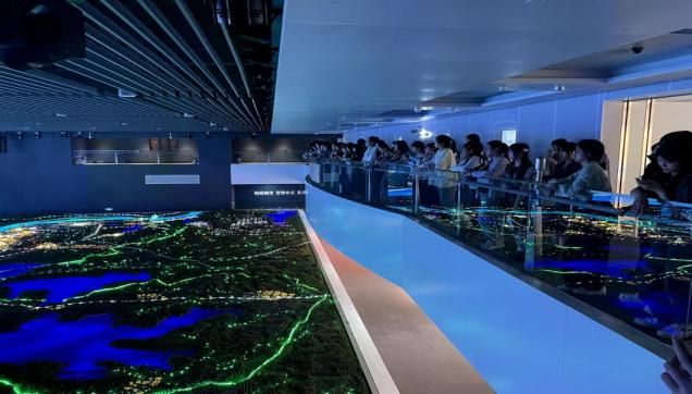 本次研学的第四站来到了鄂州市城市展示馆。其位于鄂州市民中心的西南翼,与行政服务中心、图书馆形成建筑群组合镶嵌于美丽的洋澜湖畔。以鄂州城市发展脉络为主轴,分为“我家就在老鄂城”、“飞向世界的新港城”、“追梦不止的鄂州人”三大主题,展现鄂州的过去、现在和未来,展示鄂州的好山好水好区位。在这里,凭借科技手段,研学团队欣赏到了鄂州的自然风光和风土人情,感受着鄂州城市现代化建设的新征程。