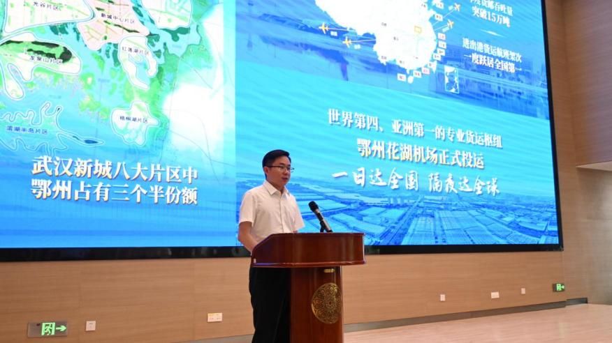 鄂州花湖机场是本次研学的最后一站。近年来,鄂州花湖机场加快推进国际一流航空货运枢纽建设,奋力打造国际自由贸易航空港,轴辐式航线网络和“全球123快货物流圈”加快形成。随着机场开放功能不断提升,鄂州市外贸进出口额呈现快速增长态势。在参观过程中,讲解员关于鄂州花湖机场1.5小时飞行圈可覆盖全国90%的经济总量、80%的人口总量,货物有望实现“一日达全国,隔夜达全球”的讲解引起了研学学子们的强烈震撼和感叹。