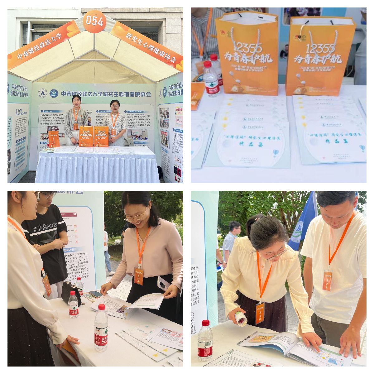 活动现场还开设了“心理集市”,各高校心理社团及多家优秀12355服务台纷纷展示自己的成果,通过互动游戏、心理疏导等方式,推动心理健康建设,为大学生舒缓心理压力。我校研究生心理健康协会的展位上宣传展示了社团的总体建设情况和特色品牌活动,并展出了“心绪漫研”研究生心理漫画作品集,吸引现场许多师生驻足观看和交流,得到大家的认可和赞赏。我校师生还参观了其他高校心理社团展位,与其他高校的社团指导老师和成员展开深入交流。