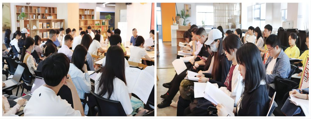 示范宣讲结束后,研究生宣讲团成员博士研究生翁诗棋、硕士研究生付涵和李斌分别以《乡村振兴 加“数”前行》《新质生产力对马克思主义生产力理论的创新》《读懂改变中国的“第二个结合”》为题展开宣讲备课。
