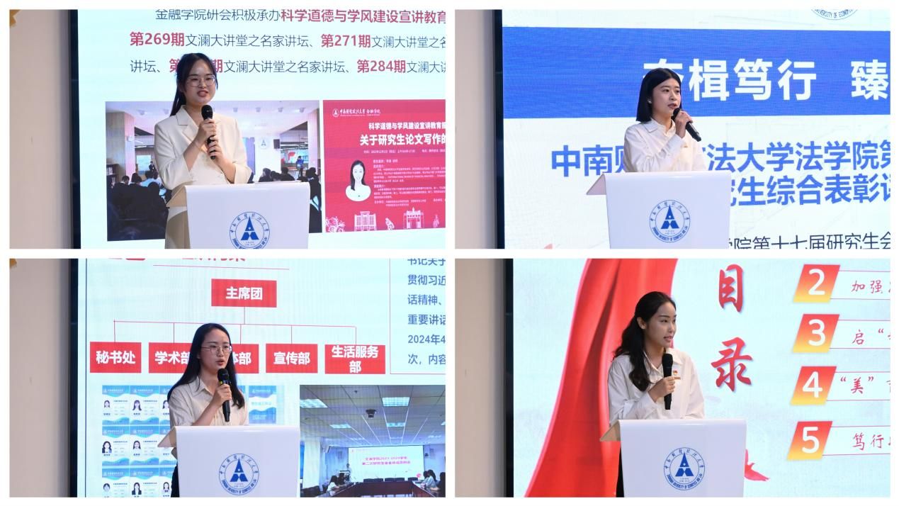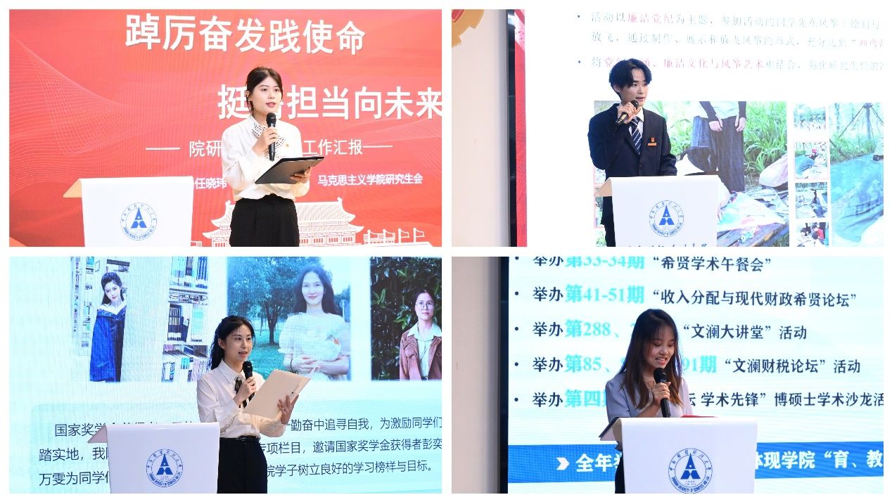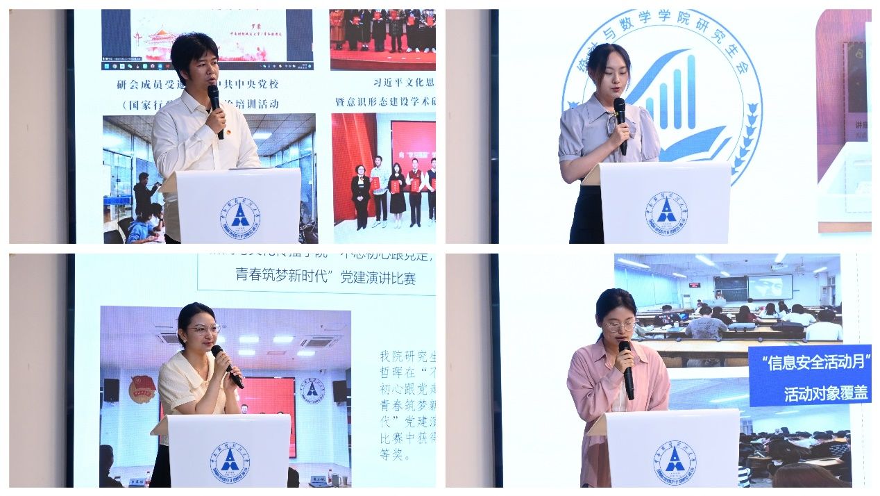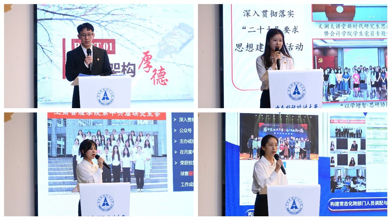 参与集体单项奖评选的各学院(中心)研究生会详细展示了本学年研究生组织在强化政治引领、促进学术科研、维护同学权益、加强文体浸润和研究生自办刊物建设等方面的工作情况,展示出我校各类研究生组织在贯彻“五育并举”重要理念,服务研究生全面发展和成长成才方面的显著成绩。