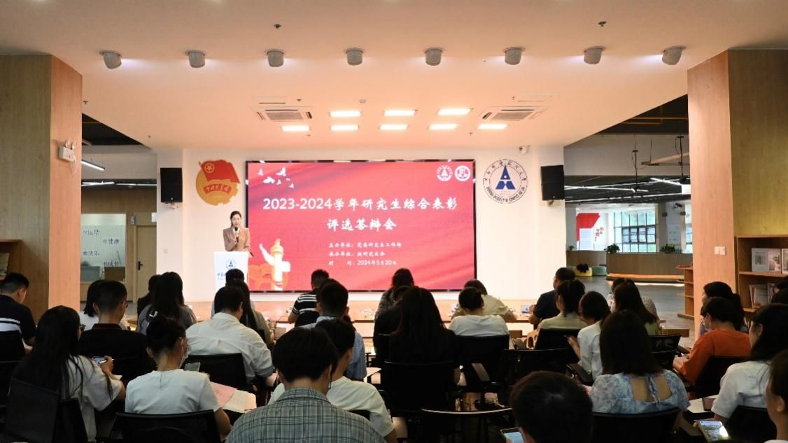 (通讯员 付慧娟 黄丽琼 马若雯 何欣雨 左喻文杰 摄影 金旭昕)为选树典型、表彰先进,激励广大研究生以习近平新时代中国特色社会主义思想为指引,在中国式现代化建设中挺膺担当,同时表彰各学院(中心)研究生会在本学年取得的优异成绩,促进研究生组织间的学习与交流,5月20日下午,2023-2024学年研究生综合表彰评选答辩会在大学生素质教育中心路演厅举行。党委研究生工作部李芳副部长,党委组织部姜雨杭老师、党委宣传部程凌华老师、党委学生工作部郭小义老师、就业指导服务中心肖力玮老师、党委研究生工作部付慧娟老师、黄丽琼老师,各学院(中心)研究生会指导老师出席并担任评委,校研究生会主席团成员及第十三次研究生代表大会常任代表参加。