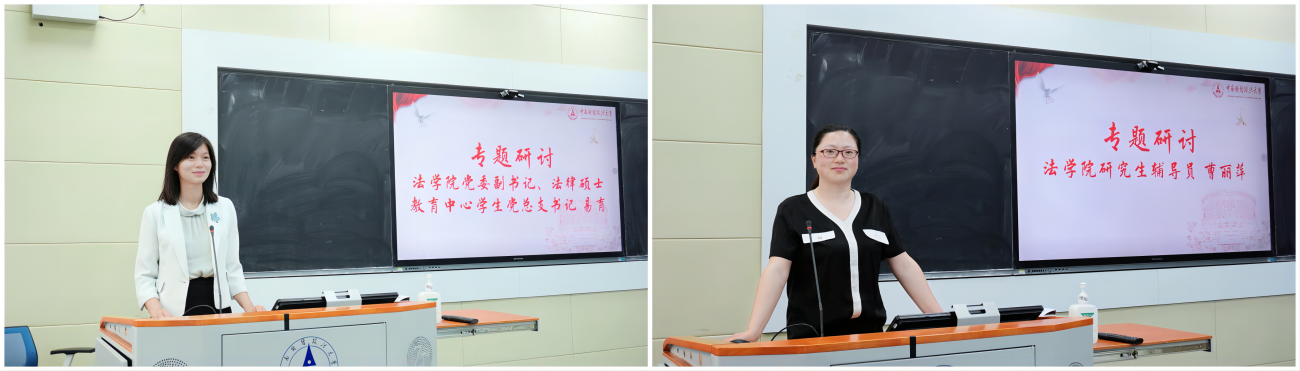 在专题研讨环节中,法学院党委副书记、法律硕士教育中心学生党总支书记易育介绍“明法启航”辅导员工作室建设经验。易书记详细说明工作室在党建引领和头雁领航等方面的特色做法,展示了工作室开展选调生模拟面试邀请赛等实践成果,以及深化同学们对各类职业前景的认识、培养职业能力的具体举措。
