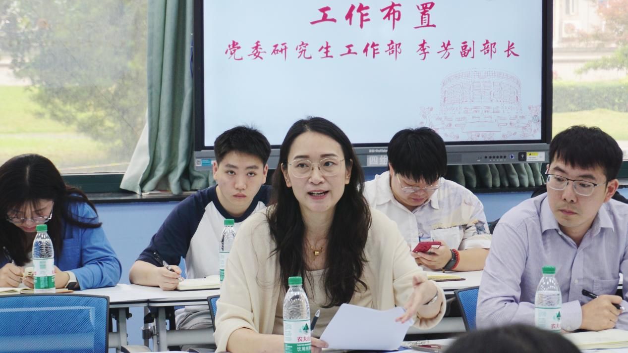 首先,肖翠祥部长做工作布置。肖部长传达了教育部对辅导员队伍建设的文件要求并围绕辅导员工作的关键领域进行了细致入微的分析与指导,向辅导员队伍专业化、职业化发展提出更高要求。随后,肖部长对毕业季研究生教育管理工作做整体布置。他强调,毕业季是检验学校思政工作成效的关键节点,各研究生培养单位必须高度重视、周密部署,以确保各项工作有序进行。李芳副部长介绍了“情系中南·逐梦前行”毕业研究生主题教育系列活动,并就加强毕业季学生心理健康教育引导工作、召开第十四次研究生代表大会及2024年暑期社会实践工作做具体要求。