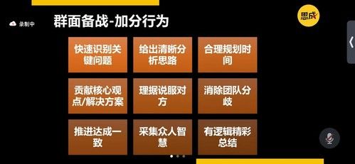 随后,王老师对同学的表现进行了专业而深入的点评,并给出针对性建议。她强调了在群面中识别关键问题、给出清晰分析思路、合理规划时间、贡献核心观点、用逻辑说服对方、消除团队分歧、推进达成一致、采集众人智慧以及有逻辑精彩总结等加分行为的重要性。