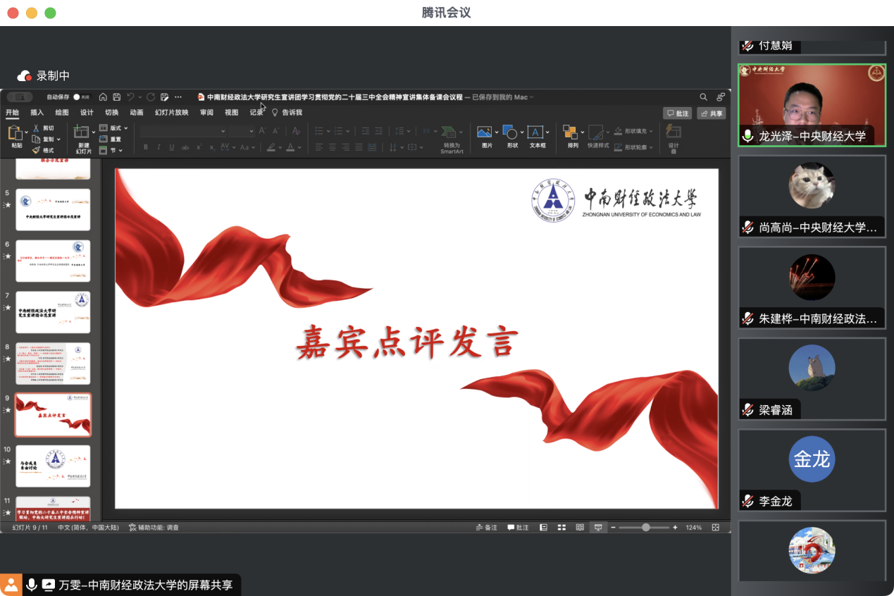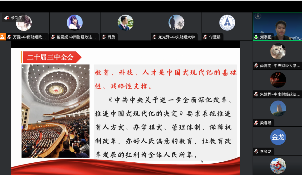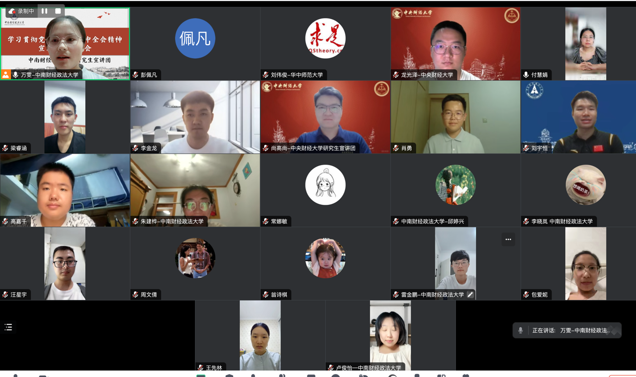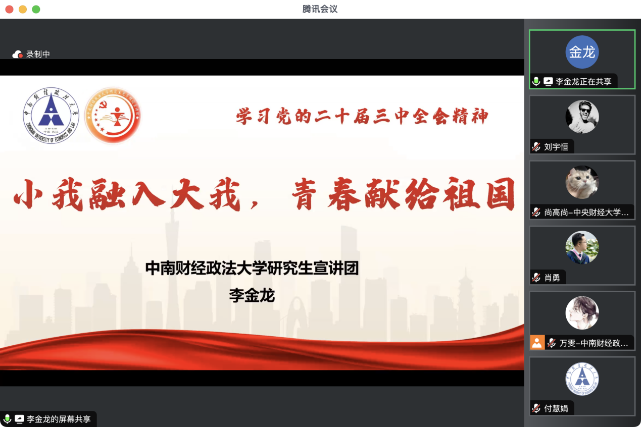 首先,中央财经大学研究生宣讲团副团长尚高尚和米兰电竞·(中国区)研究生宣讲团成员李金龙、万雯、包爱妮、刘宇恒、常娜敏六位同志围绕党的二十届三中全会精神作主题宣讲。
