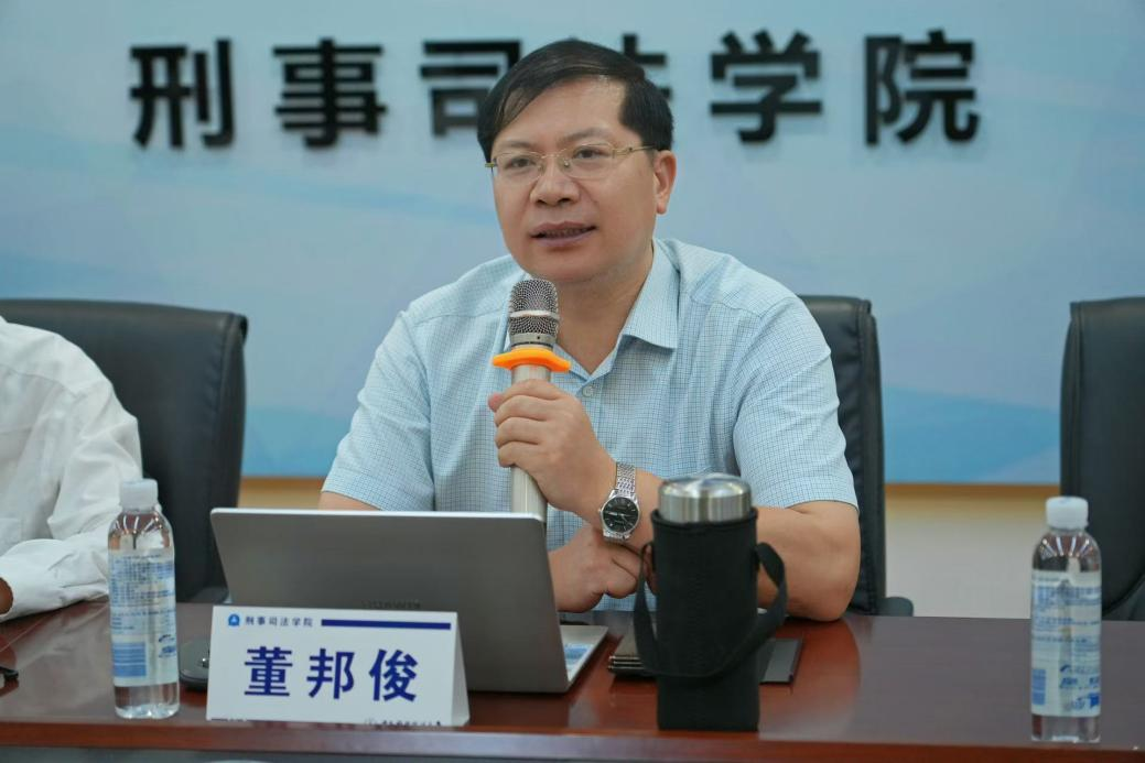 最后,董邦俊教授对官文生庭长的精彩讲授表达感谢,并就本次讲座内容进行简要总结。他认为,本次讲座内容详实,兼具学术价值与实践意义,总结了目前涉案财产处理工作的实践困境与解决路径。他强调,研究工作应紧密结合实际,从具体规范上升到理性分析的高度,并鼓励学生们从多学科角度出发,深入探究问题。