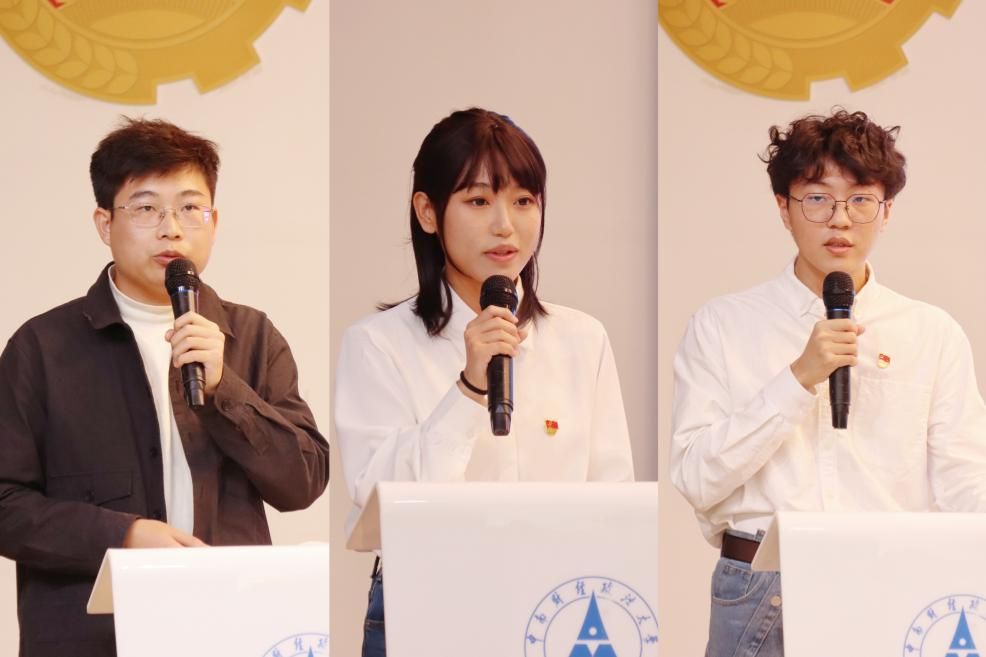 研究生宣讲团成员—法学院铁德铭、法律硕士教育中心张孜妍和金融学院杜泽中聚焦大别山精神、抗战精神及伟大建党精神,从历史回顾、具体内涵以及在当下社会重要性三方面呼吁广大青年要牢记历史,传承红色血脉、弘扬革命传统。