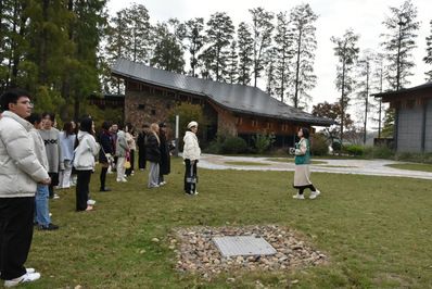 坐落在东湖落雁风景区的中国履行《湿地公约》30周年成就展示馆,是国际《湿地公约》第十四届缔约方大会的重要成就。进入展馆之前,学子们首先被建筑独特的外形吸引。通过讲解员的讲述,大家了解到这一独特的设计其实暗含“观四面风景,迎八方来客”的巧思。随后学子们逐一参观三个展厅,并对湿地五感——视觉、听觉、嗅觉、味觉、触觉进行近距离感知,切身体会到“保护湿地就是保护人与湿地共同的家园”。也进一步体悟到习近平总书记在《湿地公约》第十四届缔约方大会的开幕式致辞中提到的那句——“中国有很多城市像武汉一样,同湿地融为一体,生态宜居”。