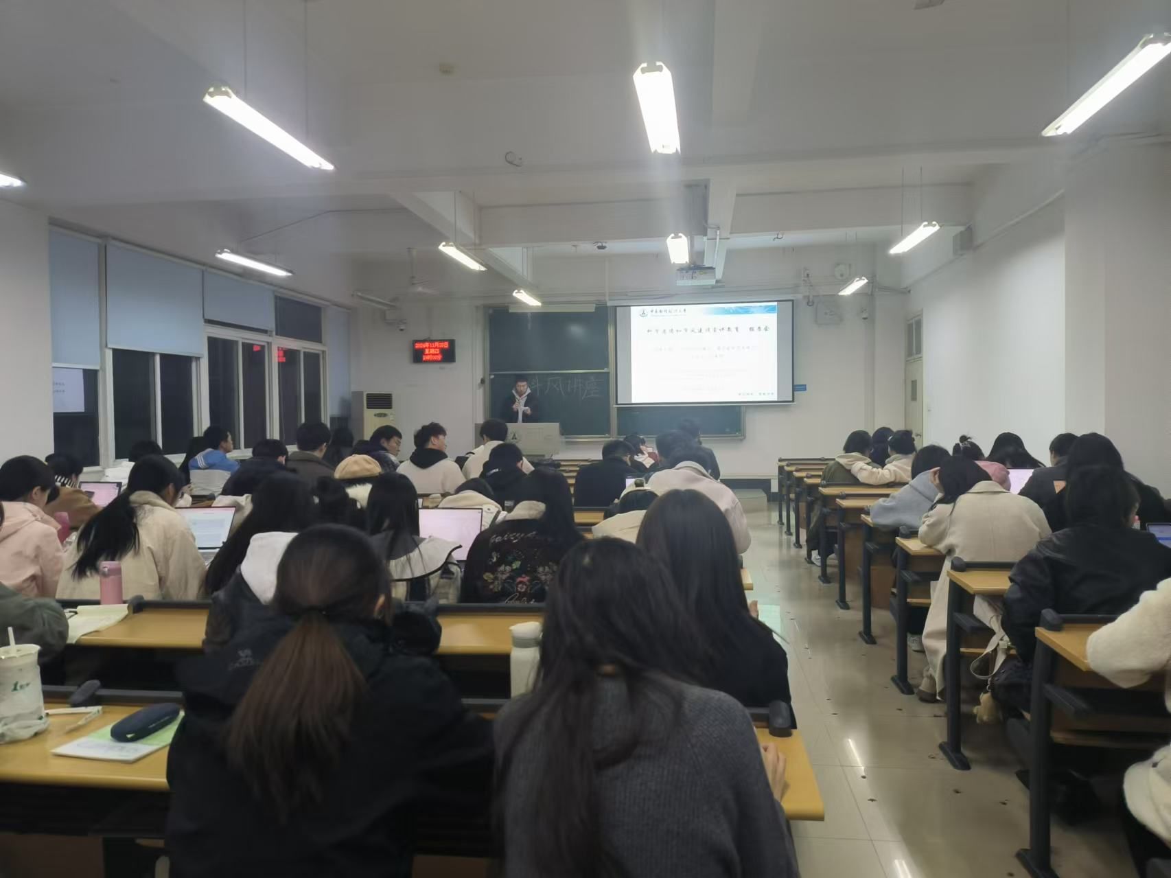 本次报告会以“坚守科研诚信,建设良好学术风气”为主题,讲解了中国科研诚信制度体系的建立与科研失信行为的界定与处理方法,强调了科研诚信作为科技创新基石的重要性。吸引了近百名经济学院研究生参与,现场座无虚席,气氛热烈。