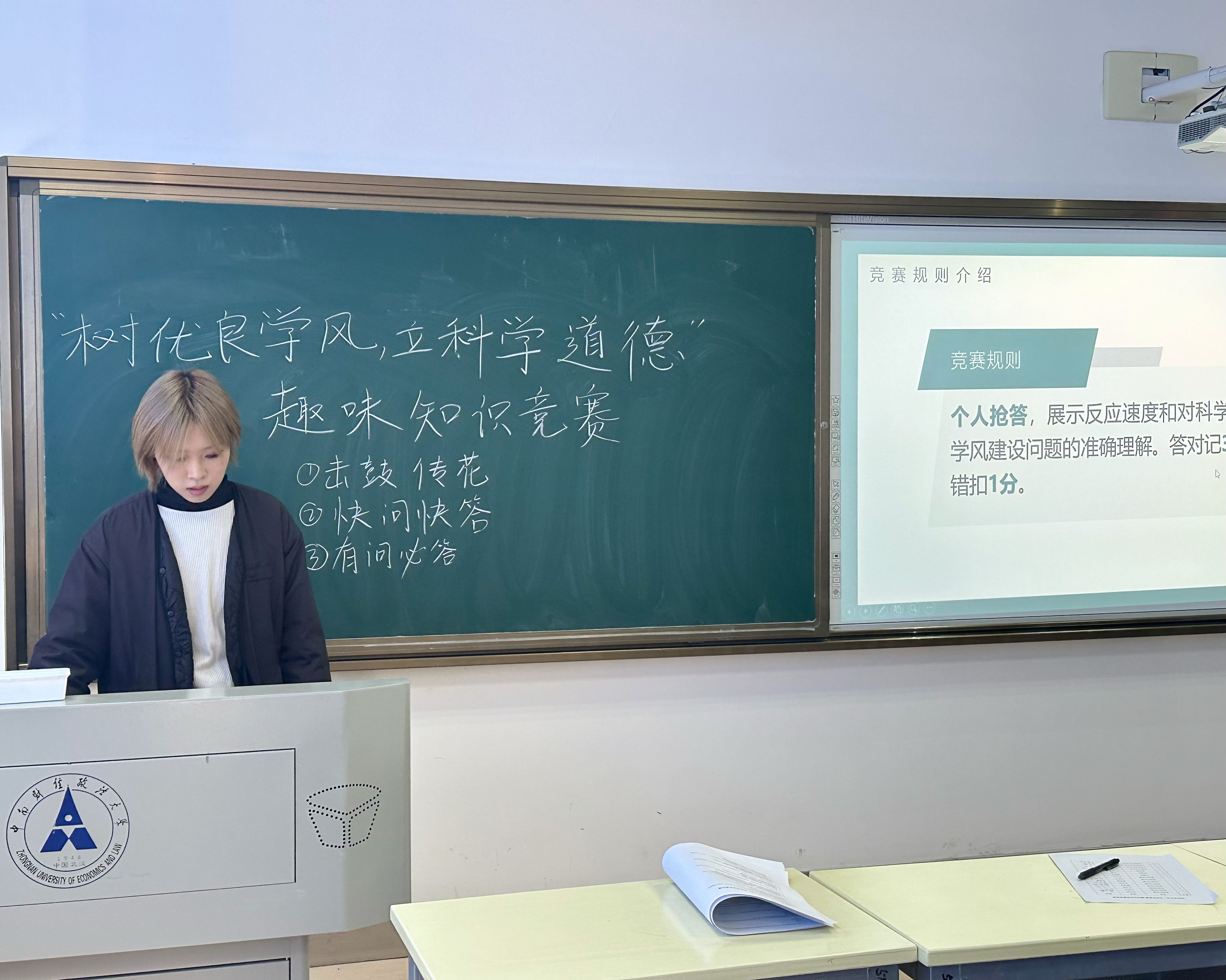 本次竞赛从校史、学术诚信、科学道德等多方面考察大家的知识储备,赛题内容丰富,流程分为“击鼓传花”“快问快答”“有问必答”三个环节,活动采取积分制,最后根据积分排名决出胜负。