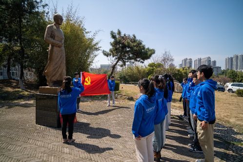 恰逢春分,同学们步行至学校第一任校长“范文澜先生之像”铜像处,少先队员们与党员青年们重温入队誓词和入党誓词,在庄严的誓词中感受使命与担当,让红色的种子如同春日新芽般在心中生根发芽。