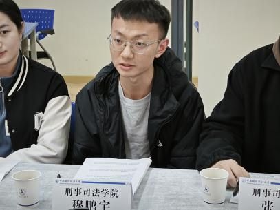 会上,研究生代表们结合学科特色、个人实践和校园生活展开热烈讨论。2023级治安学硕士生刘雯钰根据自身学习经历,从学术成长、实践育人、文体活动及生活服务四个方面分享心得体会。2024级刑法学博士生王江昕认为作为中南大博士生,需要深刻理解中国式现代化的法治内涵,聚焦前沿领域,将理论研究与司法实践紧密结合。2023级刑法学硕士生蚁俊彦从财经政法深度融通的学科建设以及职业规划两个方面提出建议,提出开设大数据与刑法交叉课程的建议。