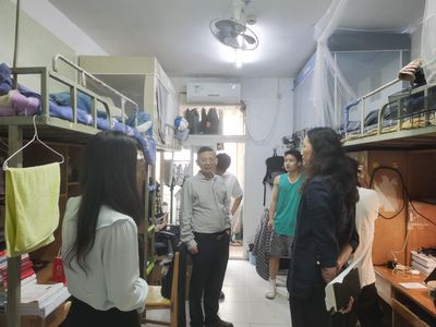 会后,师生一行实地走访外国语学院、公共管理学院研究生宿舍,了解同学们的生活状态。
