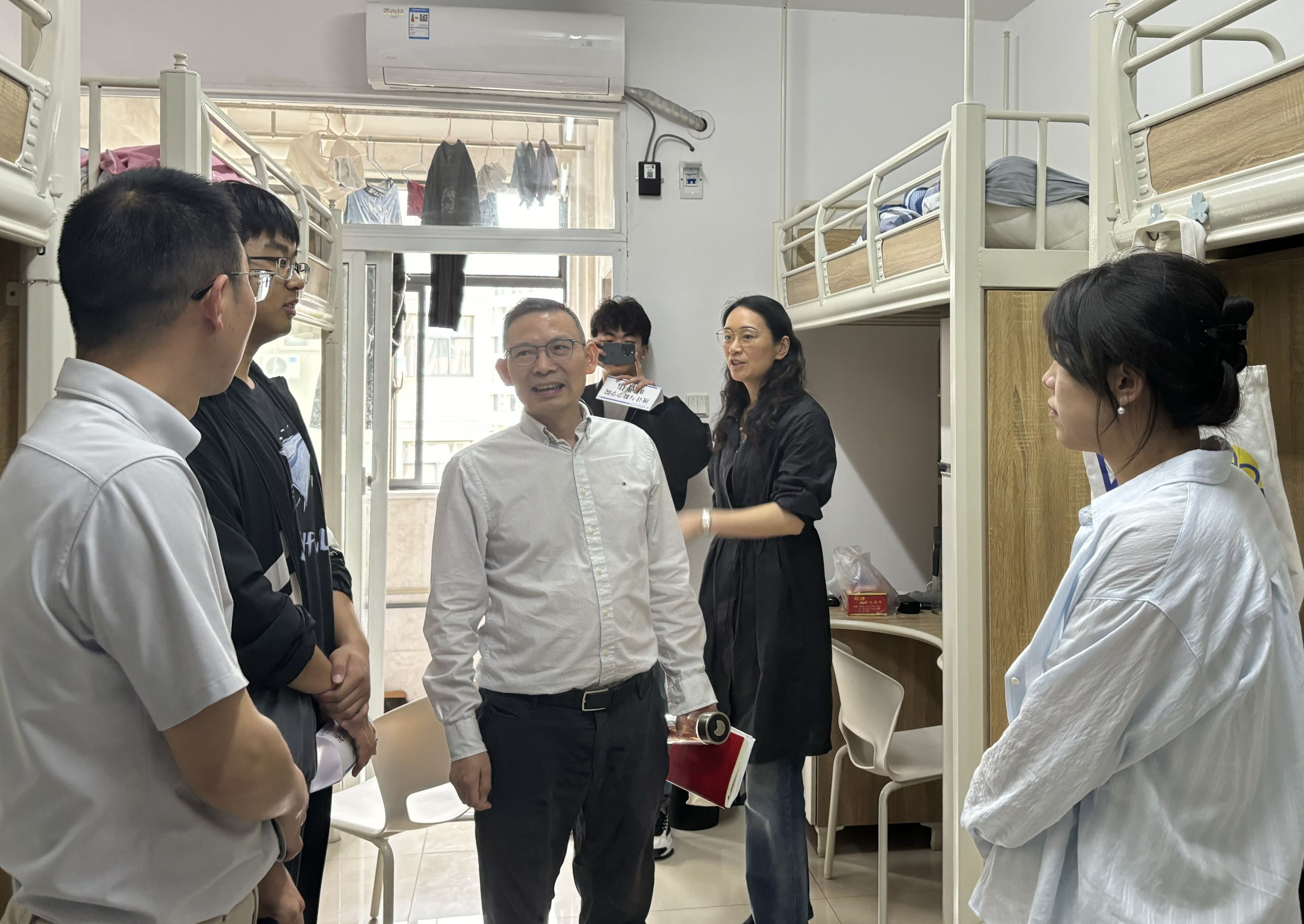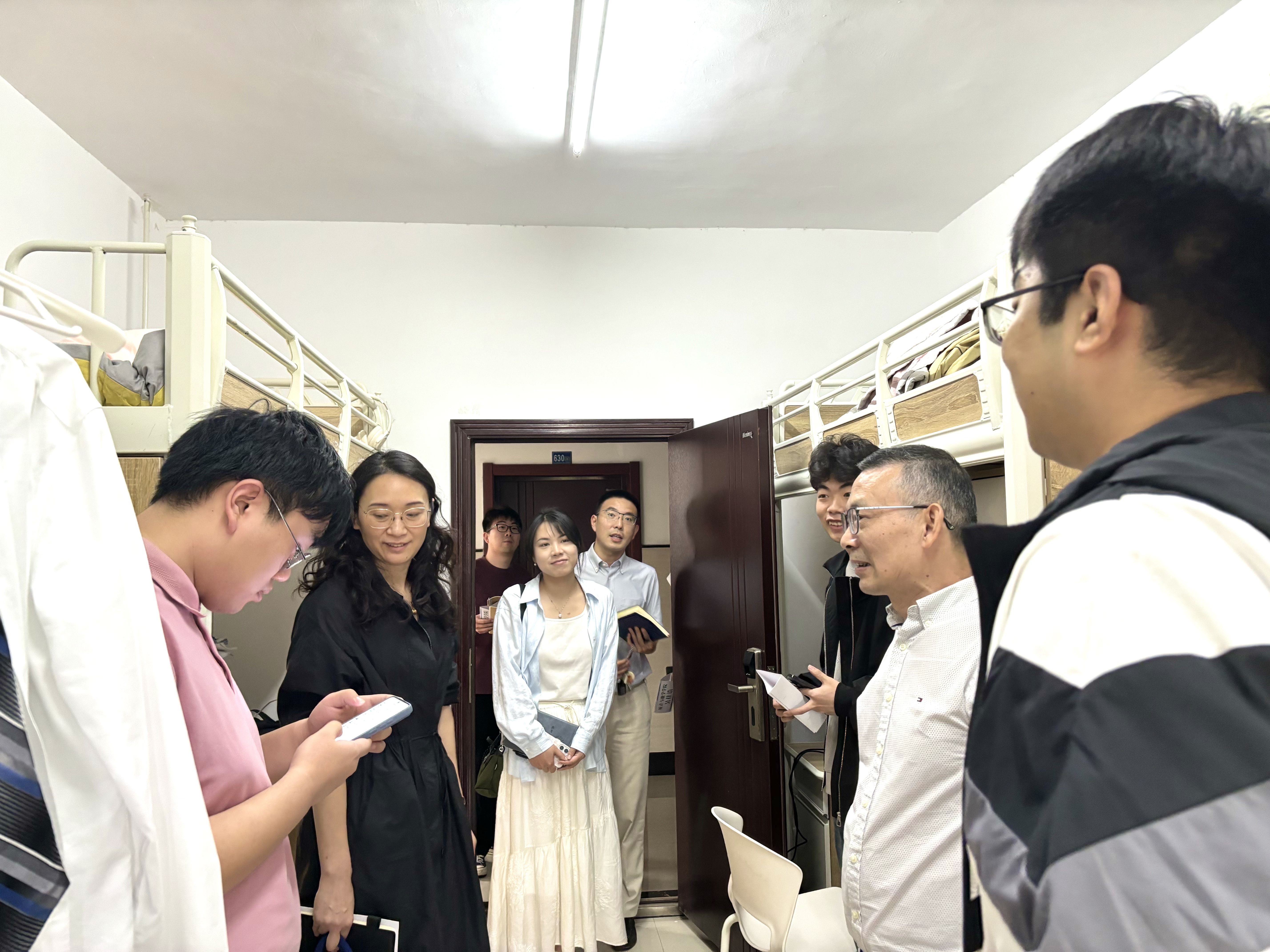 会后,师生一行实地走访望湖研究生宿舍,了解同学们的生活状态。