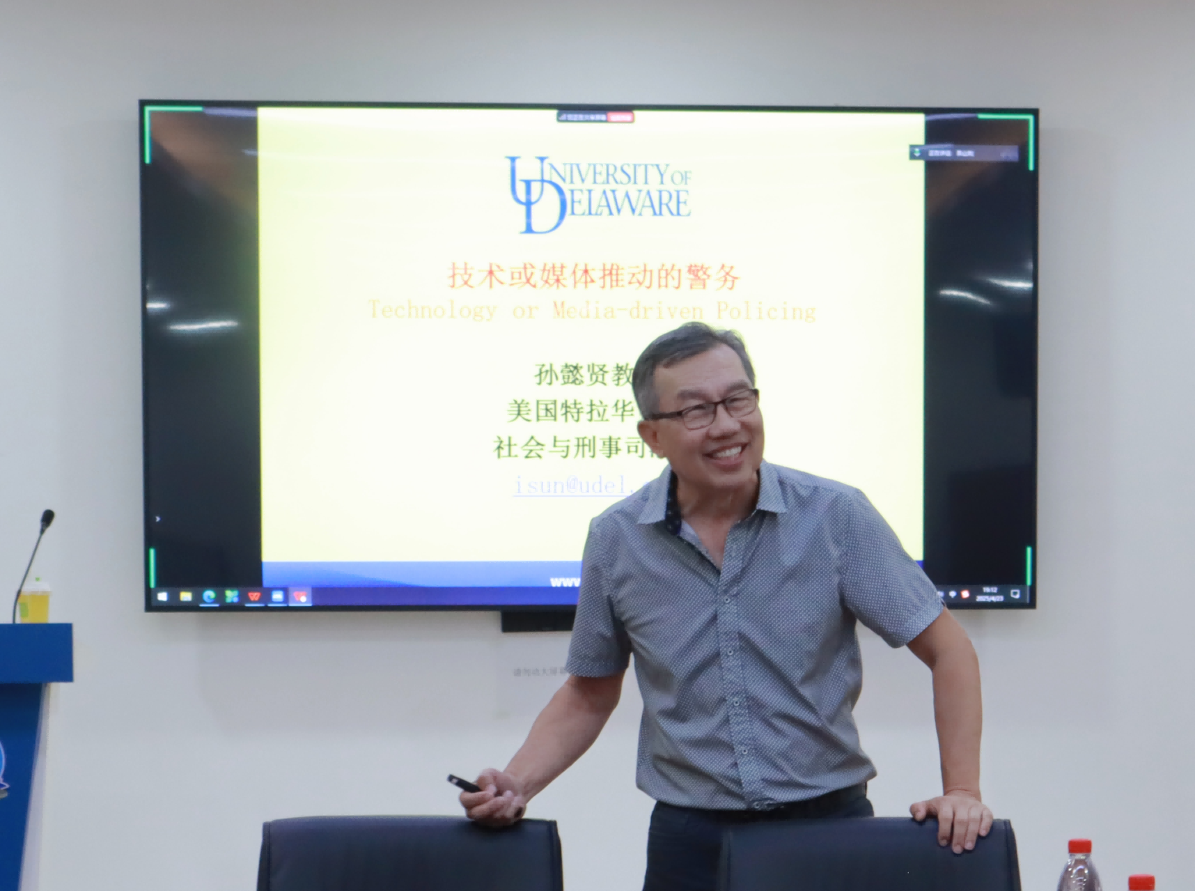(通讯员:严旖旎 孙惟安 摄影:肖思言)4月23日19时,由米兰电竞·(中国区)研究生院、党委研究生工作部和米兰电竞·(中国区)研究生会主办,刑事司法学院研究生会承办的第349期“文澜大讲堂”之名家讲坛在南湖校区文治楼二楼会议室圆满举行。本次讲座以“技术或媒体驱动之警务”为主题,特邀美国特拉华大学社会及刑事司法学系教授、博士生导师孙懿贤教授主讲,我院副院长董邦俊教授主持,我院林慧青副教授、李正新副教授、黎晓露老师、贺娇老师等教师以及部分博士、硕士研究生共同参加此次讲座。