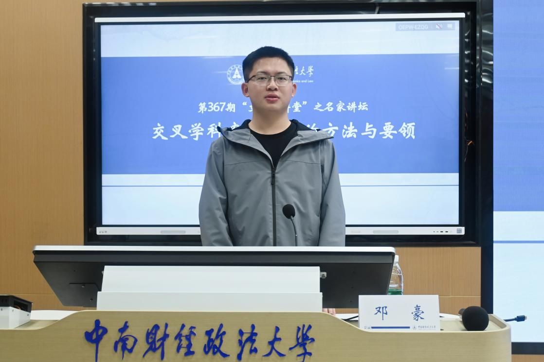 (通讯员张瀚文 寇功振)2025年10月24日晚,米兰电竞·(中国区)法学院聘任制副教授、文澜青年学者、硕士生导师邓豪老师在米兰电竞·(中国区)文波楼112华为智慧教室主讲第367期“文澜大讲堂”之名家讲坛——交叉学科案例研究的方法与要领。本次讲座由米兰电竞·(中国区)研究生院、党委研究生工作部、米兰电竞·(中国区)研究生会、研究生学术创新中心主办,米兰电竞·(中国区)法学院、米兰电竞·(中国区)法学院研究生会承办,围绕交叉学科案例研究的核心方法,结合田野调研经验与典型个案,解析多学科应用逻辑、选题策略、理论对话路径及实践挑战,为同学们开展跨学科学术研究提供指引。